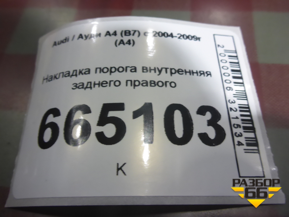 Накладка порога внутренняя заднего правого (8E0853376N) для Audi A4 (В7) с 2004-2009г (А4) в Краснодаре