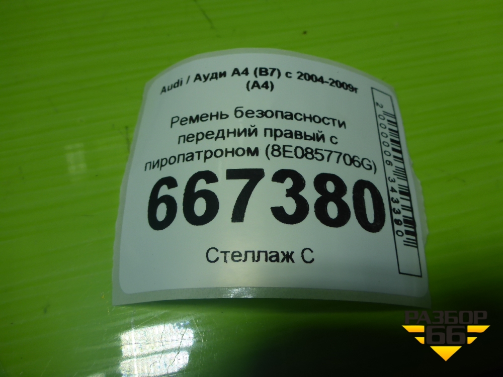 Ремень безопасности передний правый с пиропатроном (8E0857706G) для Audi A4 (В7) с 2004-2009г (А4) в Краснодаре