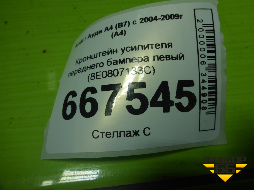 Кронштейн усилителя переднего бампера левый (8E0807133C) для Audi A4 (В7) с 2004-2009г (А4) в Краснодаре