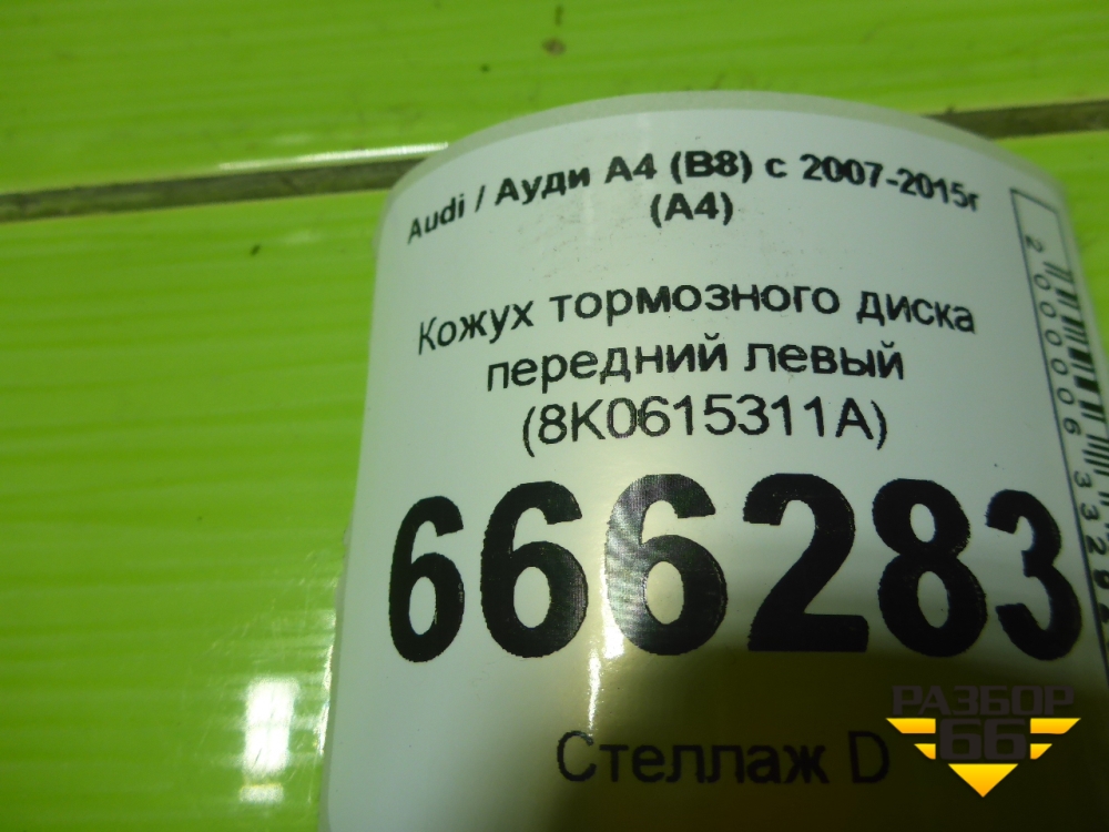 Кожух тормозного диска передний левый (8K0615311A) для Audi A4 (В8) с 2007-2015г (А4) в Краснодаре