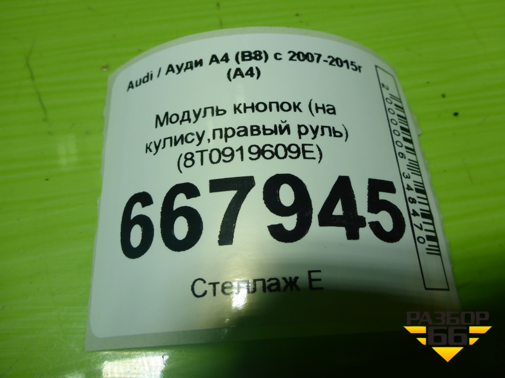Модуль кнопок (на кулису,правый руль) (8T0919609E) для Audi A4 (В8) с 2007-2015г (А4) в Краснодаре