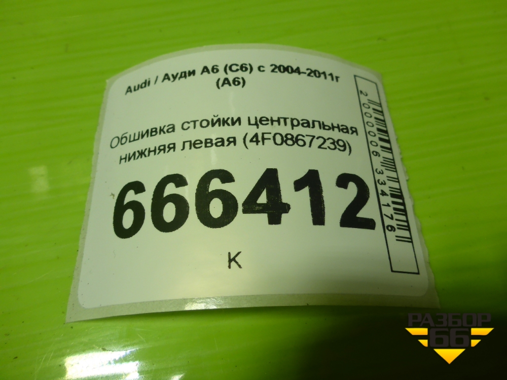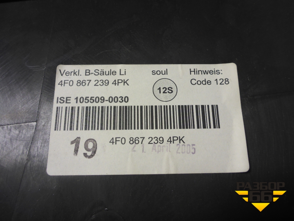 Обшивка стойки центральная нижняя левая (4F0867239) для Audi A6 (C6) с 2004-2011г (А6) в Краснодаре