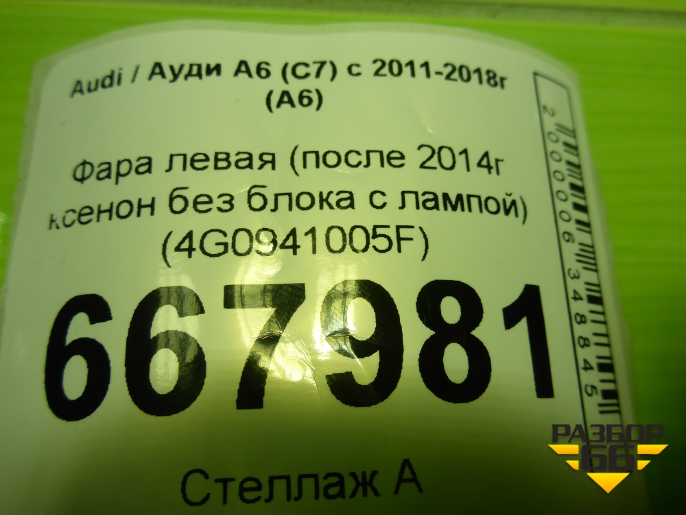 Фара левая (после 2014г ксенон без блока с лампой) (4G0941005F) для Audi A6 (C7) с 2011-2018г (А6) в Краснодаре