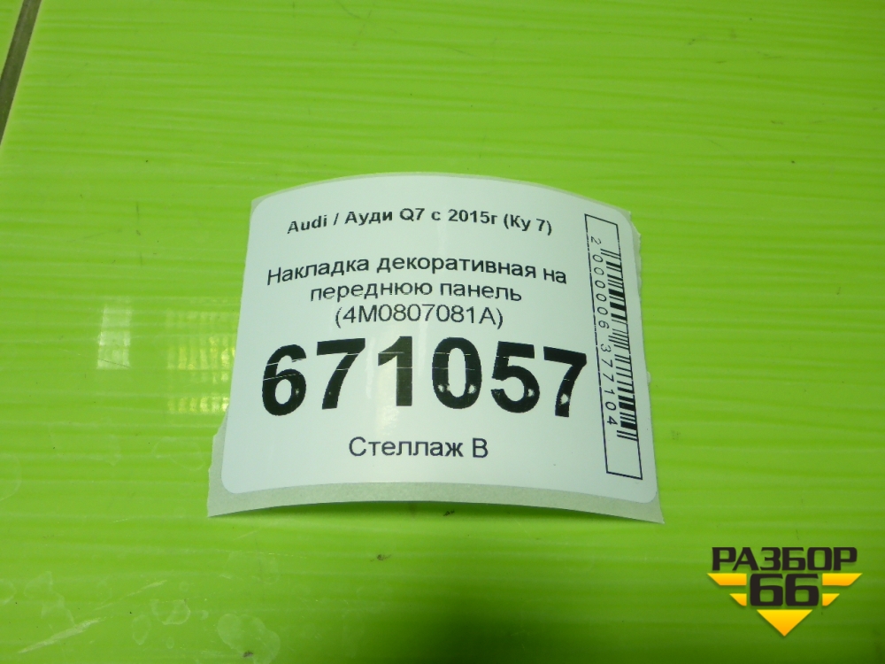 Накладка декоративная на переднюю панель (4M0807081A) для Audi Q7 c 2015г (Ку 7) в Краснодаре