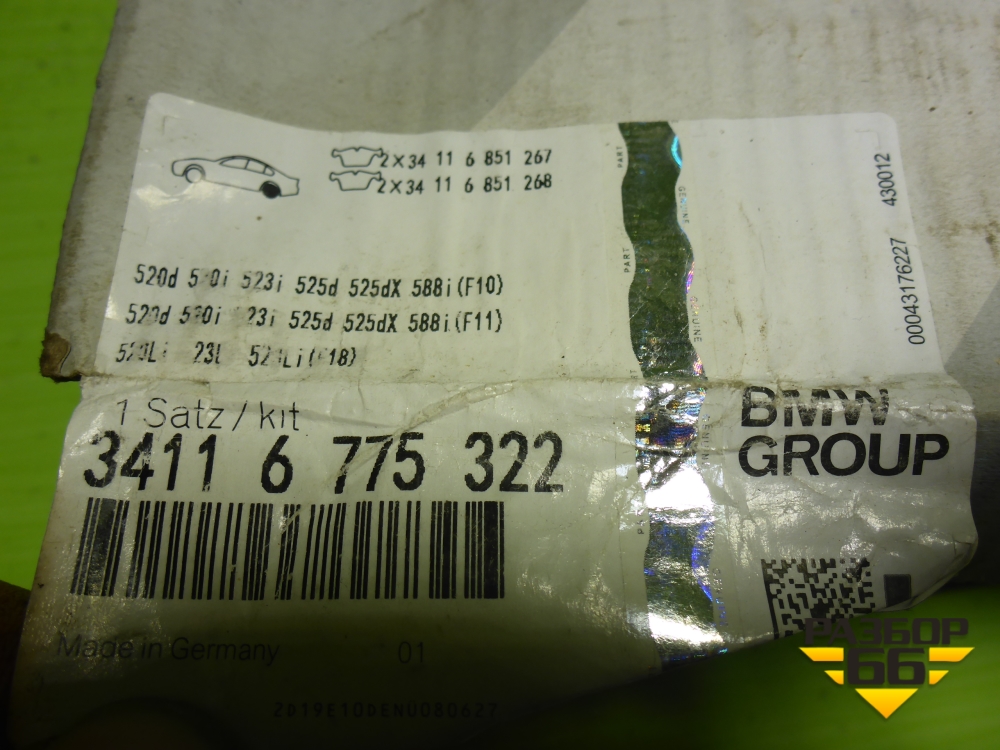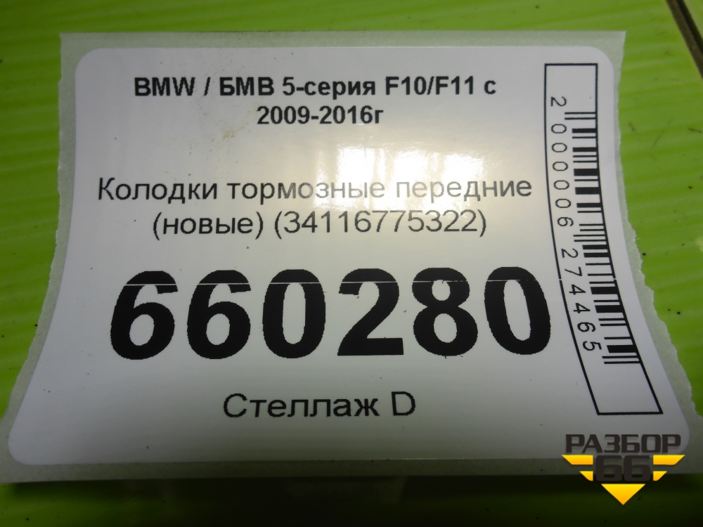 Колодки тормозные передние (новые) (34116775322) для BMW 5-серия F10/F11 с 2009-2016г в Краснодаре