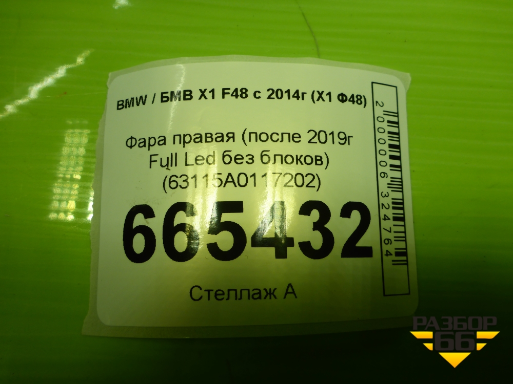 Фара правая (после 2019г Full Led без блоков) (63115A0117202) для BMW X1 F48 с 2014г (Х1 Ф48) в Краснодаре