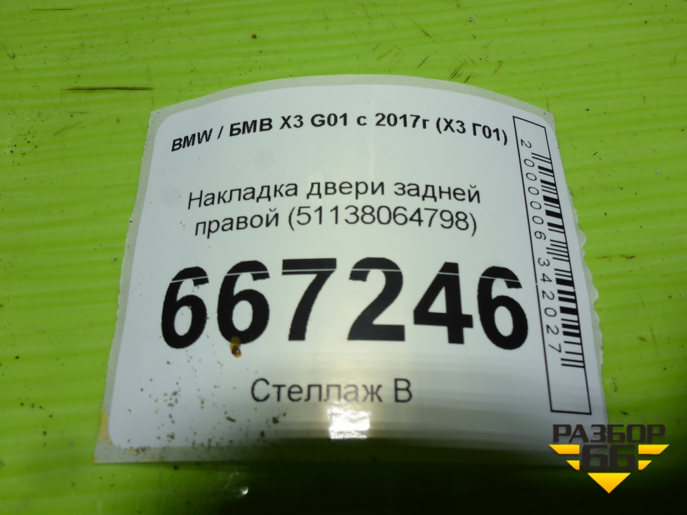 Накладка двери задней правой (51138064798) для BMW X3 G01 с 2017г (Х3 Г01) в Краснодаре