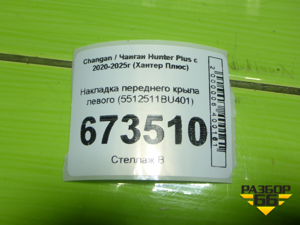 Накладка переднего крыла левого (5512511BU401) для Changan Hunter Plus с 2020-2025г (Хантер Плюс) в Краснодаре