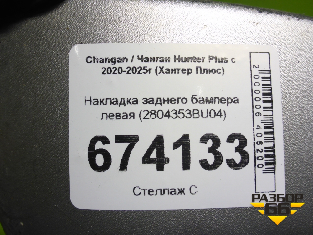 Накладка заднего бампера левая (под парктроник) (2804353BU04) для Changan Hunter Plus с 2020-2025г (Хантер Плюс) в Краснодаре