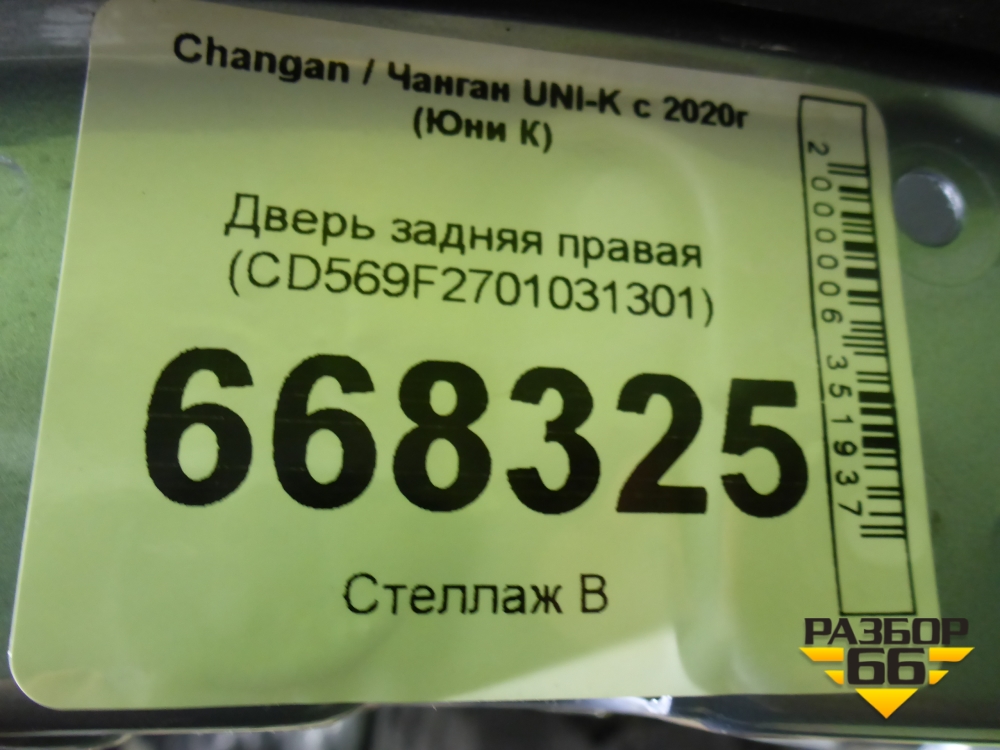 Дверь задняя правая (CD569F2701031301) для Changan UNI-K с 2020г (Юни К) в Краснодаре