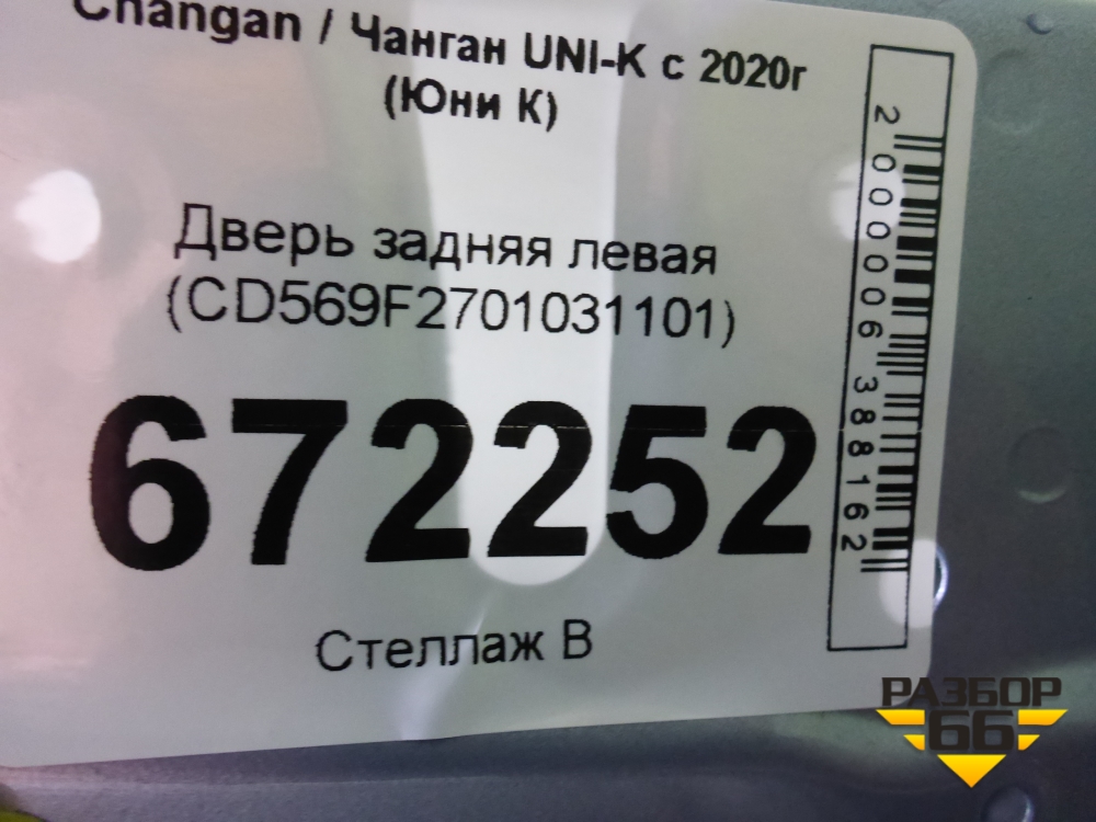 Дверь задняя левая (CD569F2701031101) для Changan UNI-K с 2020г (Юни К) в Краснодаре