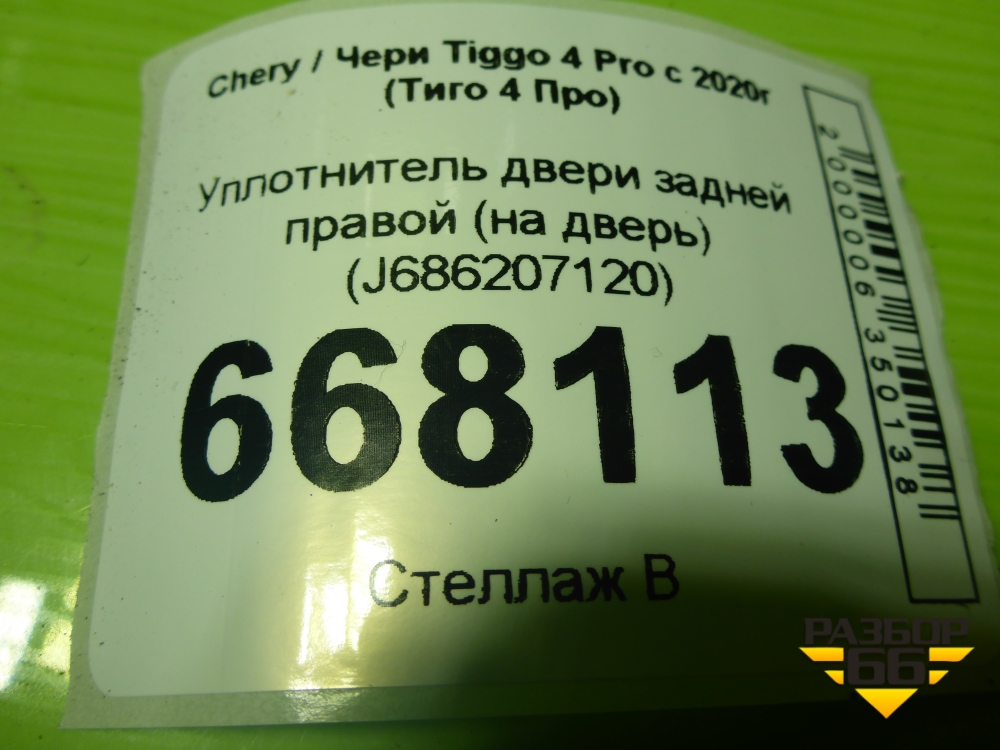 Уплотнитель двери задней правой (на дверь) (J686207120) для Chery Tiggo 4 Pro с 2020г (Тиго 4 Про) в Краснодаре