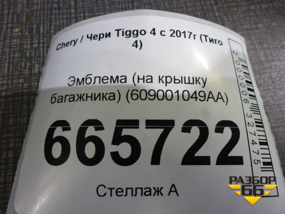 Эмблема (на крышку багажника) (609001049AA) для Chery Tiggo 4 с 2017г (Тиго 4) в Краснодаре