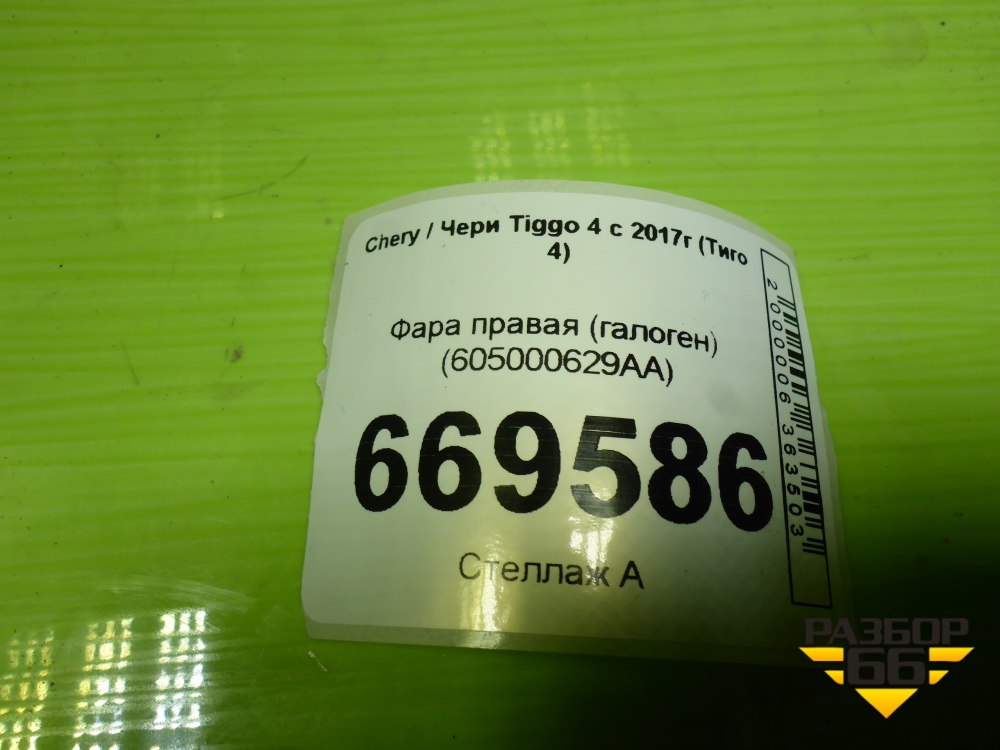 Фара правая (галоген) (605000629AA) для Chery Tiggo 4 с 2017-2025г (Тиго 4) в Краснодаре