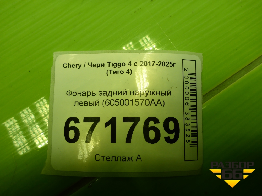 Фонарь задний наружный левый (605001570AA) для Chery Tiggo 4 с 2017-2025г (Тиго 4) в Краснодаре