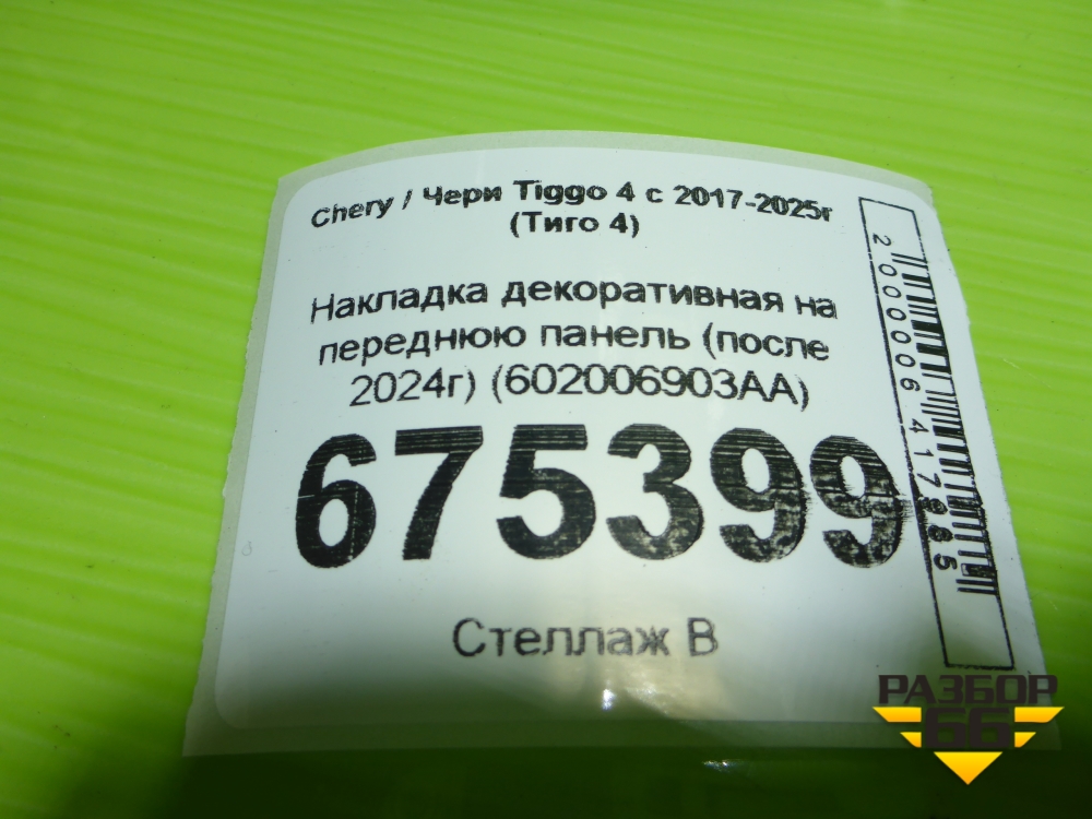 Накладка декоративная на переднюю панель (после 2024г) (602006903AA) для Chery Tiggo 4 с 2017-2025г (Тиго 4) в Краснодаре