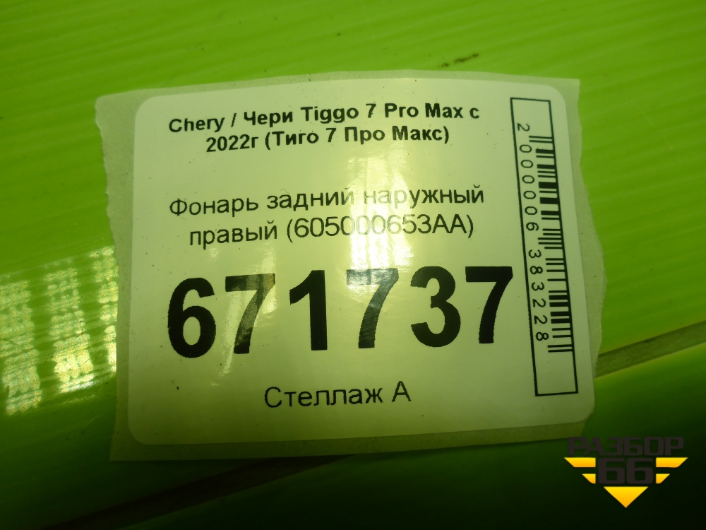Фонарь задний наружный правый (605000653AA) для Chery Tiggo 7 Pro Max с 2022г (Тиго 7 Про Макс) в Краснодаре