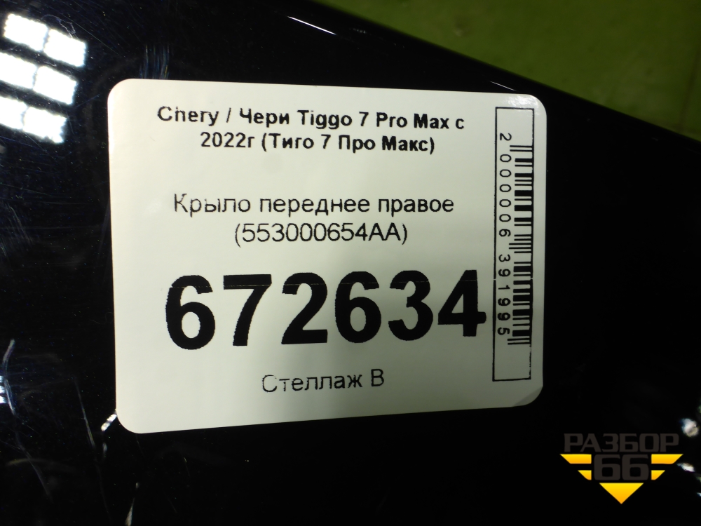 Крыло переднее правое (553000654AA) для Chery Tiggo 7 Pro Max с 2022г (Тиго 7 Про Макс) в Краснодаре