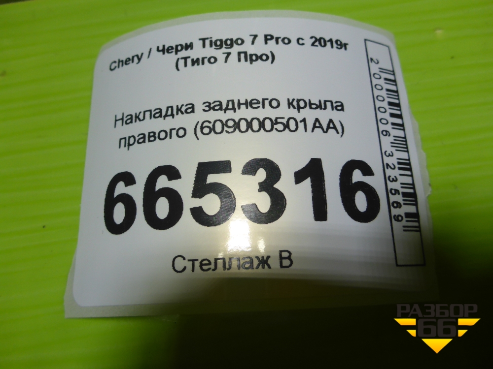 Накладка заднего крыла правого (609000501AA) для Chery Tiggo 7 Pro с 2019г (Тиго 7 Про) в Краснодаре