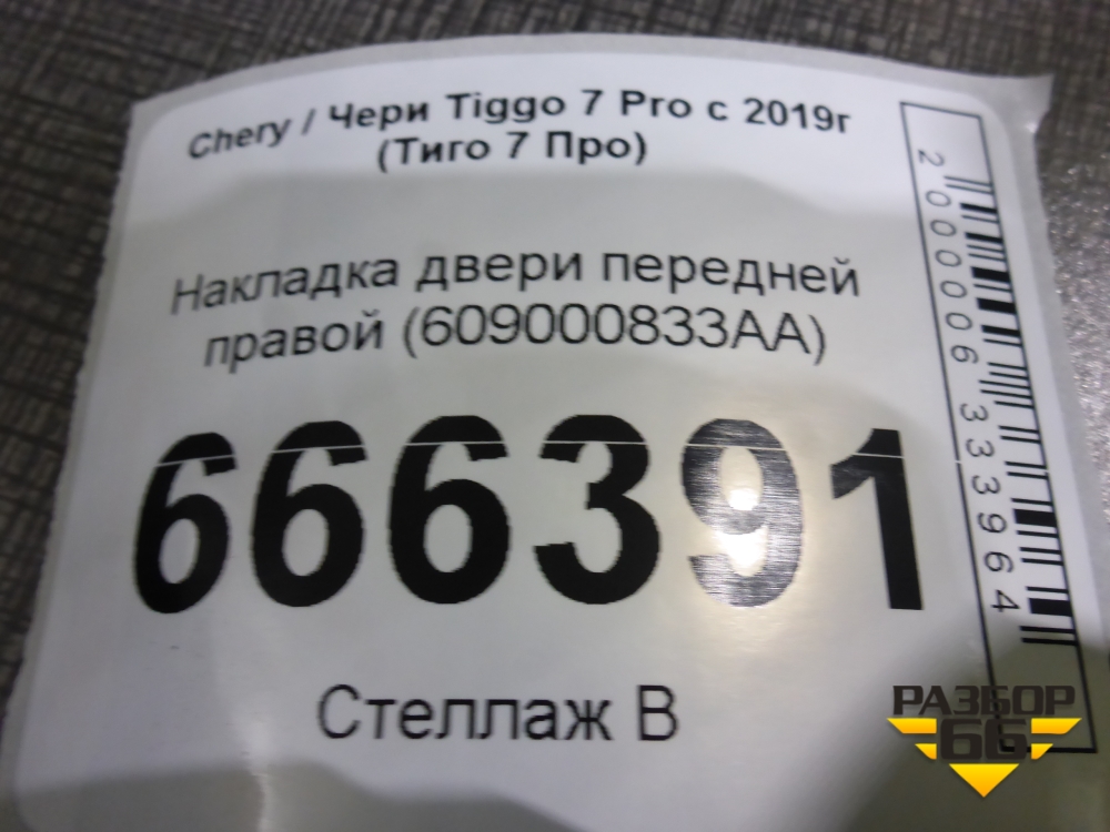 Накладка двери передней правой (609000833AA) для Chery Tiggo 7 Pro с 2019г (Тиго 7 Про) в Краснодаре