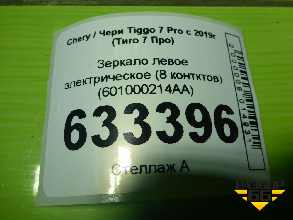Зеркало левое электрическое (8 контктов) (601000214AA) для Chery Tiggo 7 Pro с 2019г (Тиго 7 Про) в Краснодаре