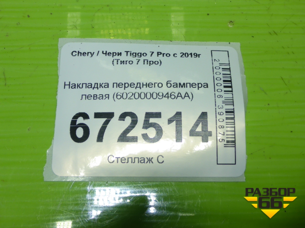 Накладка переднего бампера левая (6020000946AA) для Chery Tiggo 7 Pro с 2019г (Тиго 7 Про) в Краснодаре