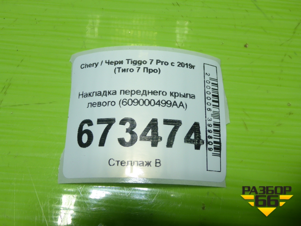 Накладка переднего крыла левого (609000499AA) для Chery Tiggo 7 Pro с 2019г (Тиго 7 Про) в Краснодаре