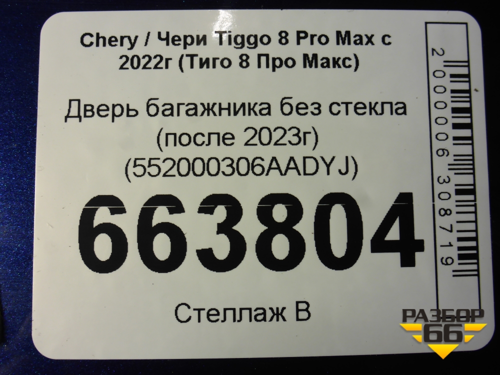 Дверь багажника без стекла (после 2023г) (552000306AADYJ) для Chery Tiggo 8 Pro Max с 2022г (Тиго 8 Про Макс) в Краснодаре