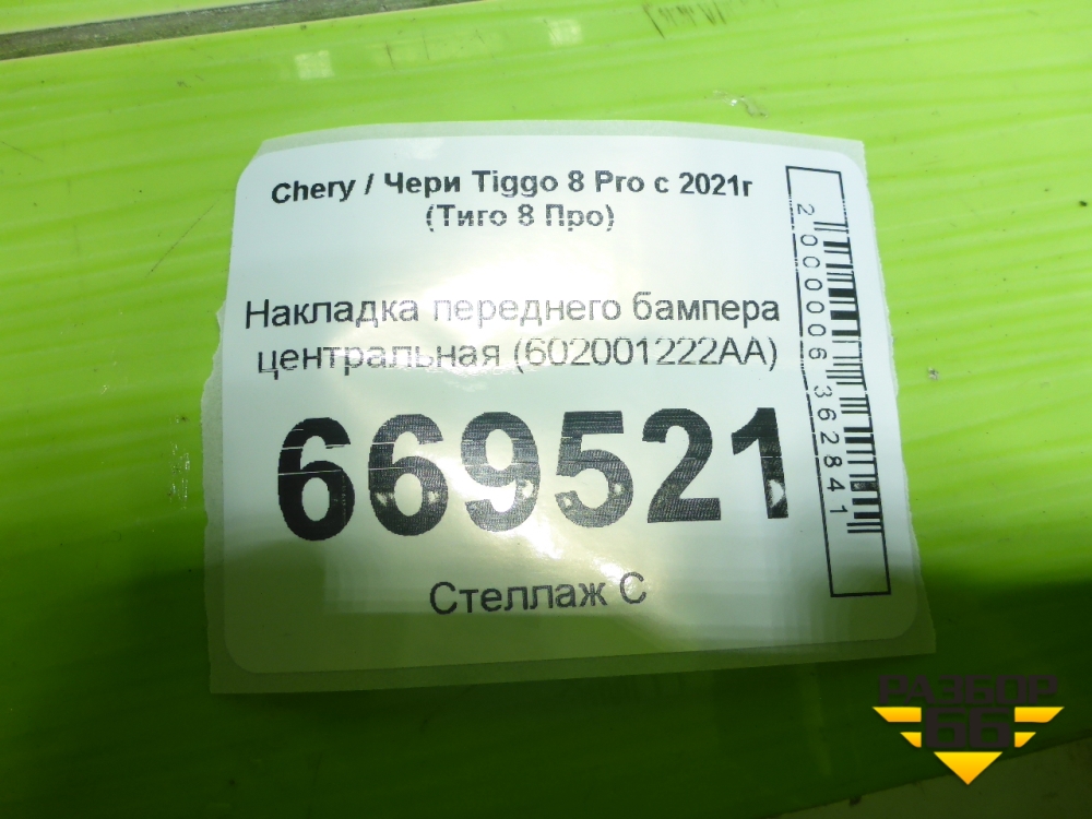 Накладка переднего бампера центральная (602001222AA) для Chery Tiggo 8 Pro с 2021г (Тиго 8 Про) в Краснодаре