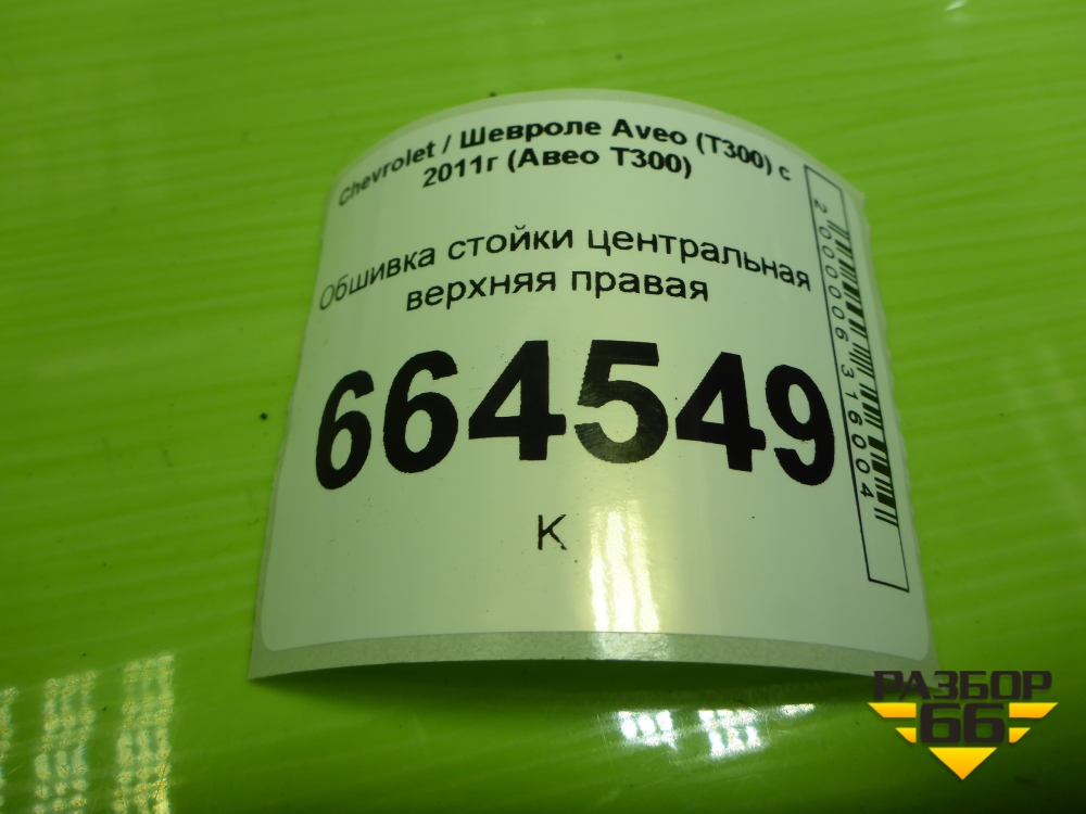Обшивка стойки центральная верхняя правая (95037501) для Chevrolet Aveo (Т300) с 2011г (Авео Т300) в Краснодаре