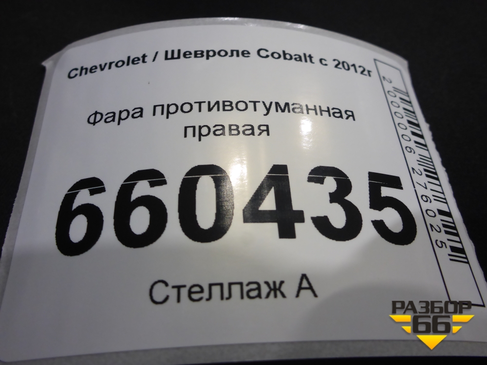 Фара противотуманная правая (198031B) для Chevrolet Cobalt с 2012г (Кобальт) в Краснодаре