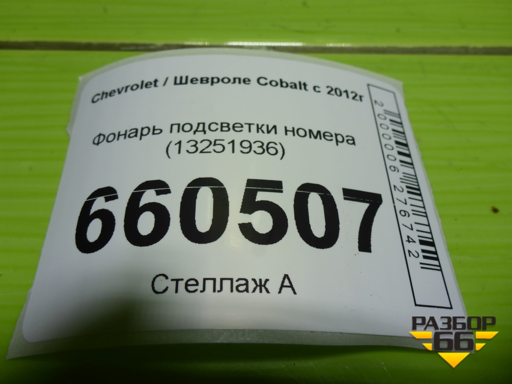 Фонарь подсветки номера (13251936) для Chevrolet Cobalt с 2012г (Кобальт) в Краснодаре