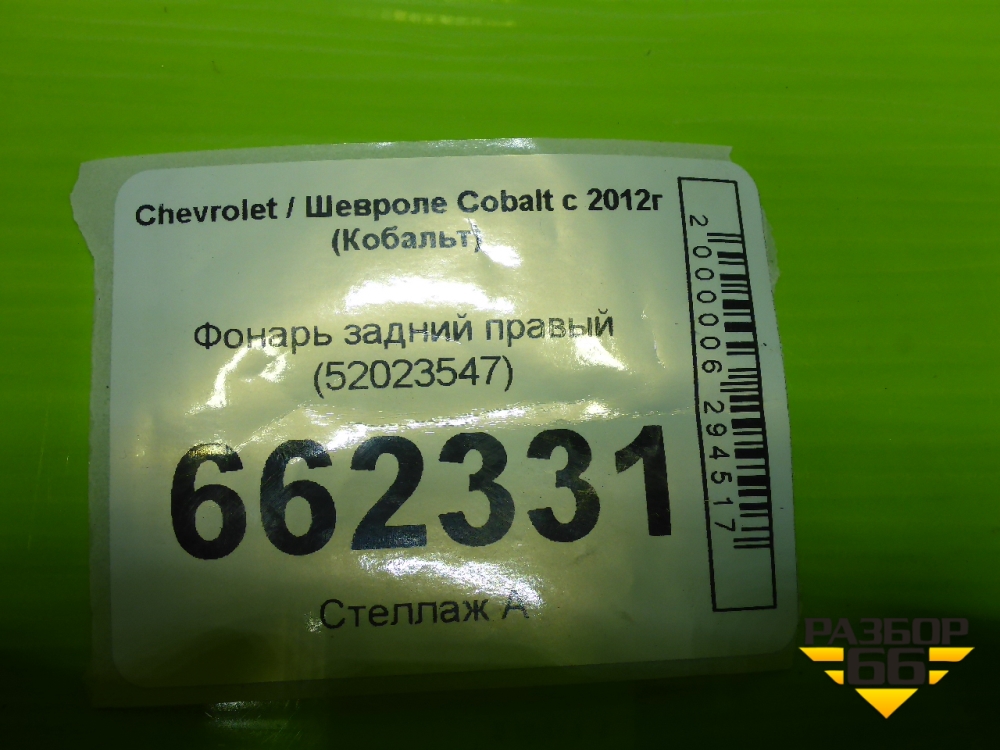 Фонарь задний правый (52023547) для Chevrolet Cobalt с 2012г (Кобальт) в Краснодаре