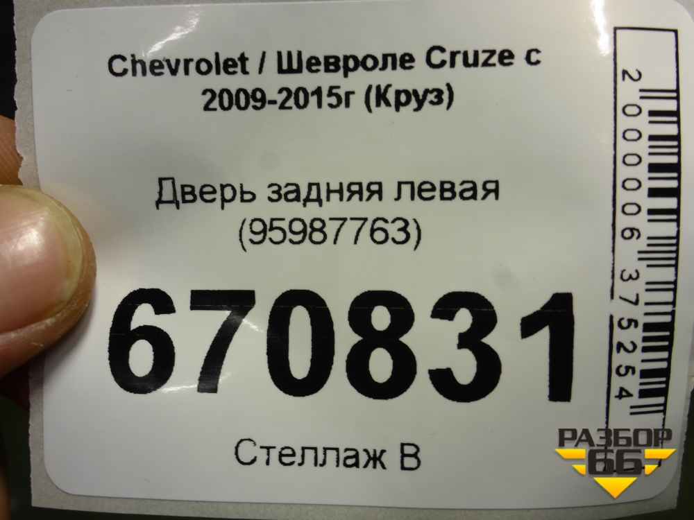 Дверь задняя левая (95987763) для Chevrolet Cruze c 2009-2015г (Круз) в Краснодаре