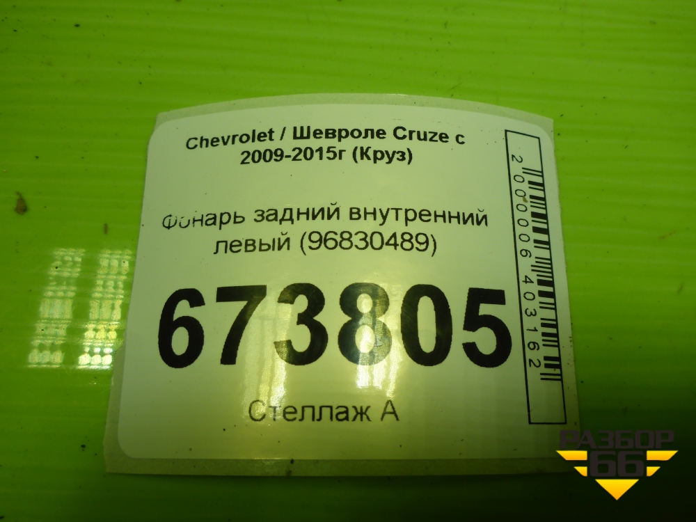 Фонарь задний внутренний левый (седан) (96830489) для Chevrolet Cruze c 2009-2015г (Круз) в Краснодаре