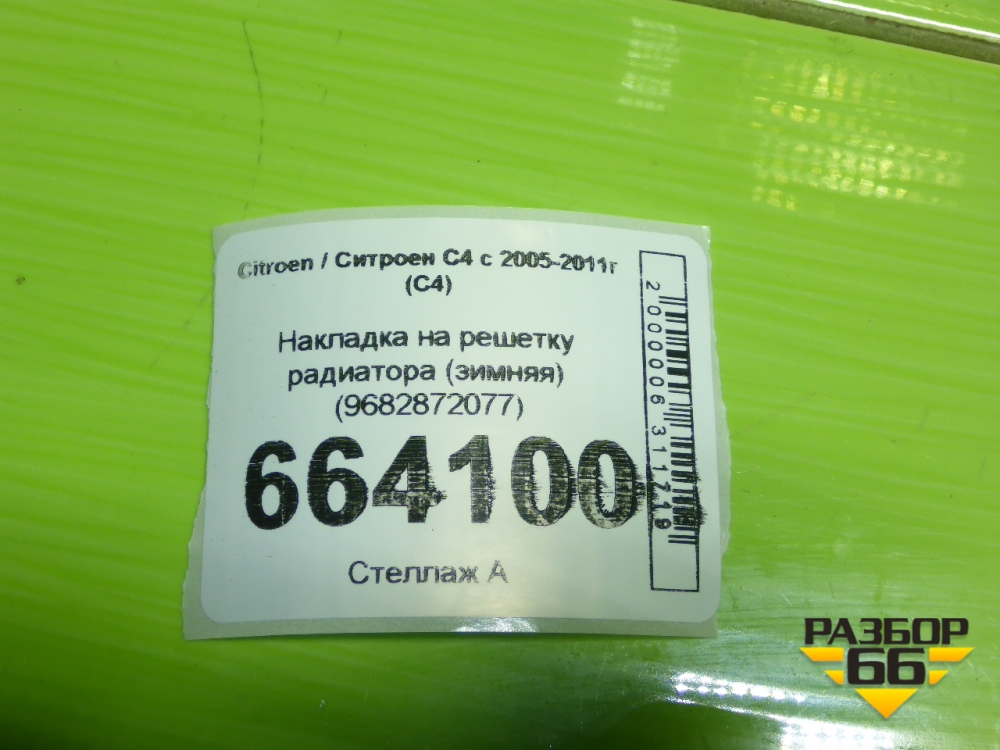 Накладка на решетку радиатора (зимняя) (9682872077) для Citroen C4 с 2005-2011г (С4) в Краснодаре