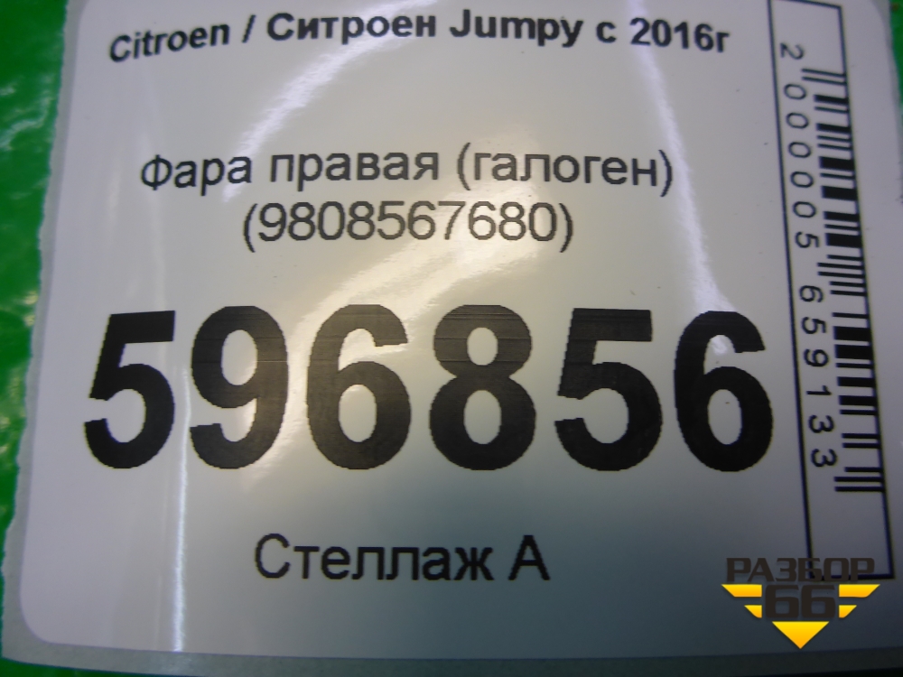 Фара правая (галоген) (9808567680) для Citroen Jumpy с 2016г (Джампи) в Краснодаре