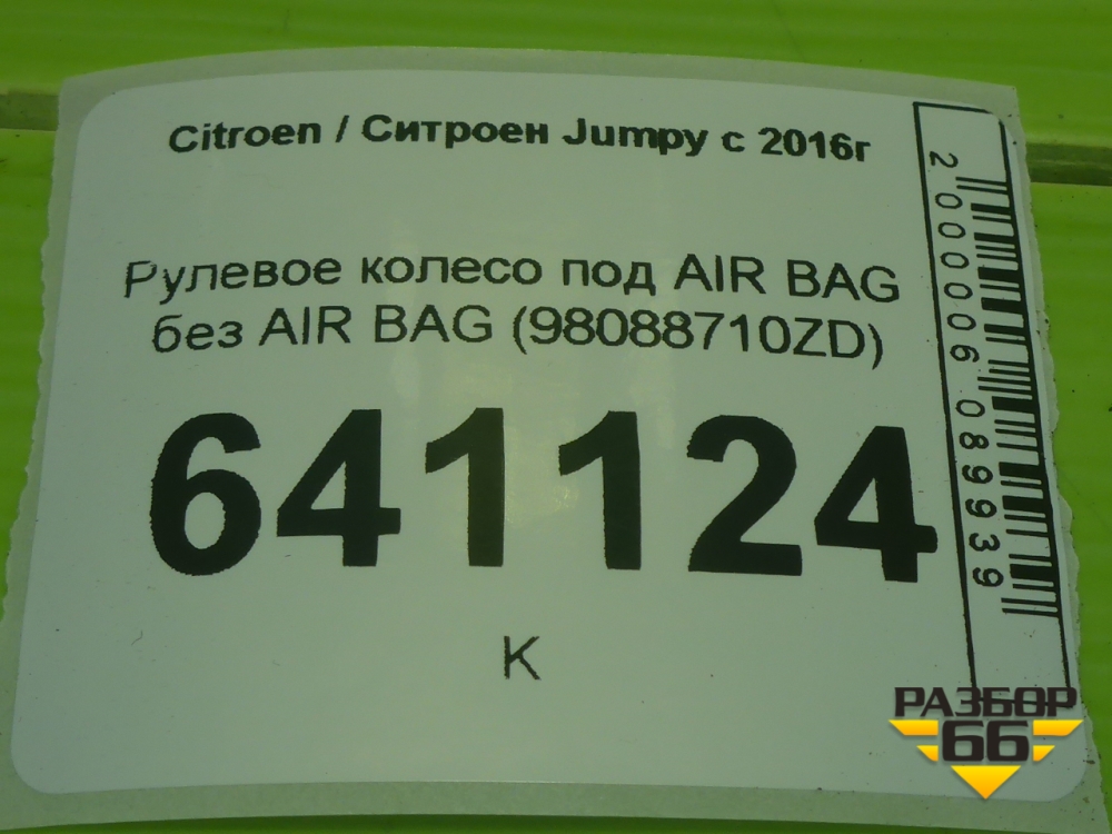 Рулевое колесо под AIR BAG без AIR BAG (98088710ZD) для Citroen Jumpy с 2016г (Джампи) в Краснодаре