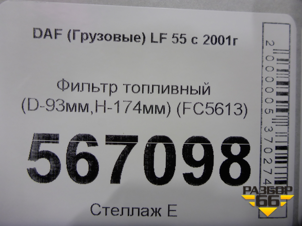 Фильтр топливный (D-93мм,H-174мм) (FC5613) для DAF LF 55 с 2001г (ЛФ) в Краснодаре