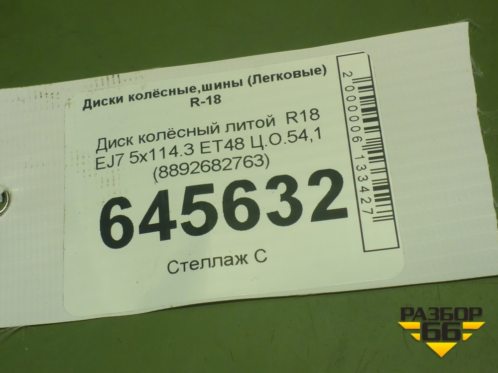 Диск колёсный литой R18 EJ7 5x114.3 ET48 Ц.О.54,1 (8892682763) в Краснодаре