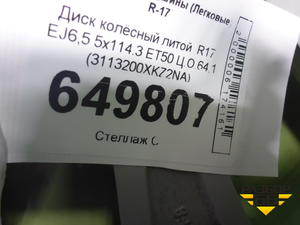 Диск колёсный литой R17 EJ6,5 5x114.3 ET50 Ц.О.64,1 (3113200XKZ2NA) в Краснодаре