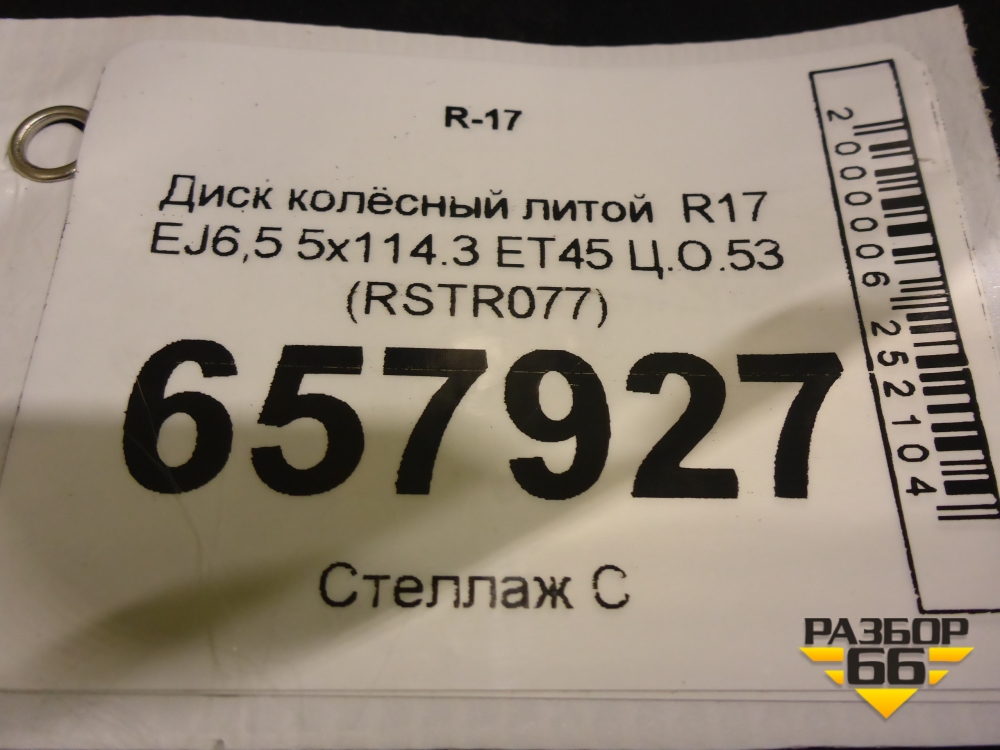 Диск колёсный литой R17 EJ6,5 5x114.3 ET45 Ц.О.53 (RSTR077) в Краснодаре