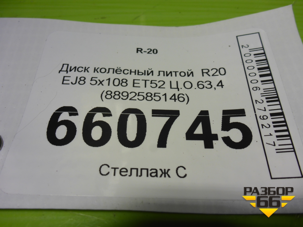 Диск колёсный литой R20 EJ8 5x108 ET52 Ц.О.63,4 (8892585146) в Краснодаре