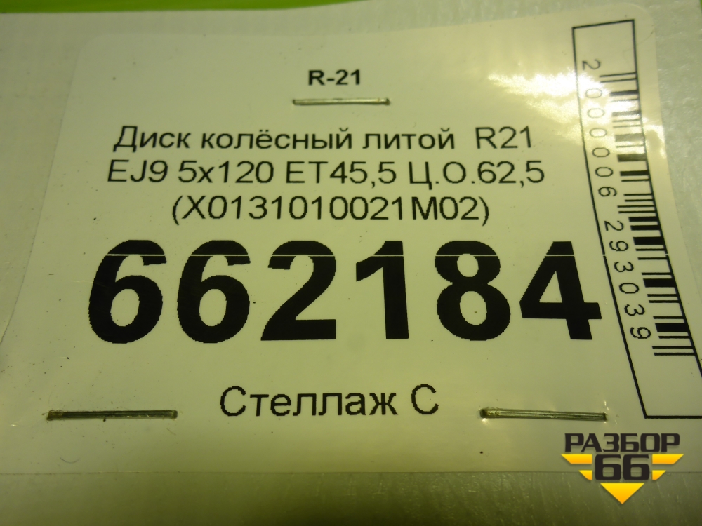 Диск колёсный литой R21 EJ9 5x120 ET45,5 Ц.О.62,5 (X0131010021M02) в Краснодаре