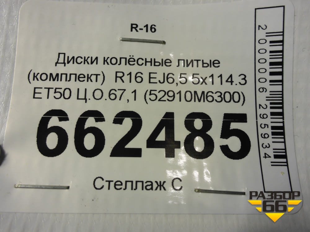 Диски колёсные литые (комплект) R16 EJ6,5 5x114.3 ET50 Ц.О.67,1 (52910M6300) в Краснодаре
