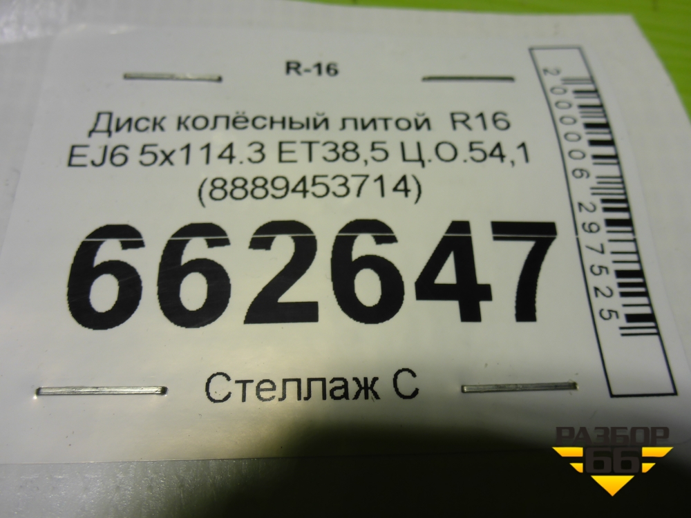 Диск колёсный литой R16 EJ6 5x114.3 ET38,5 Ц.О.54,1 (8889453714) в Краснодаре
