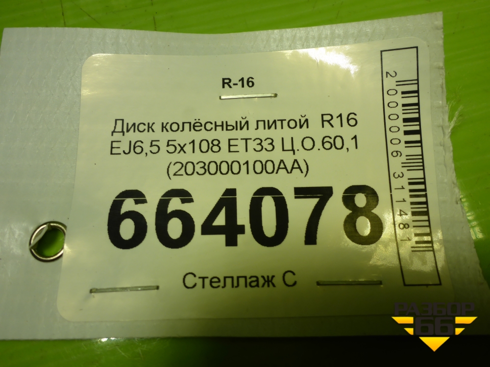 Диск колёсный литой R16 EJ6,5 5x108 ET33 Ц.О.60,1 (203000100AA) в Краснодаре