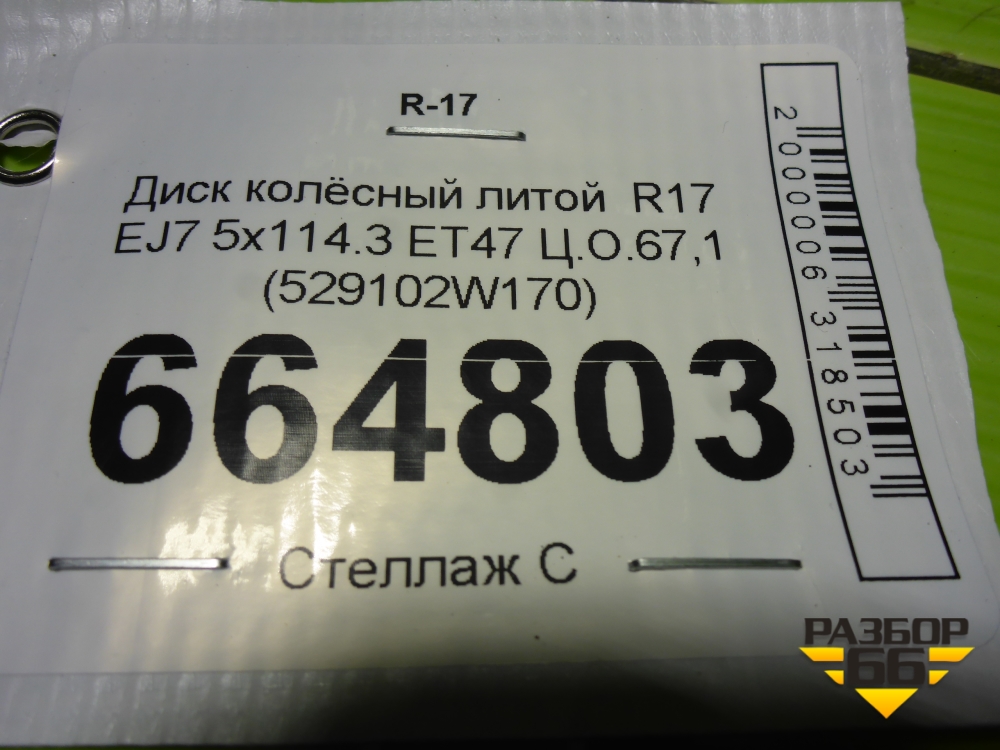 Диск колёсный литой R17 EJ7 5x114.3 ET47 Ц.О.67,1 (529102W170) в Краснодаре