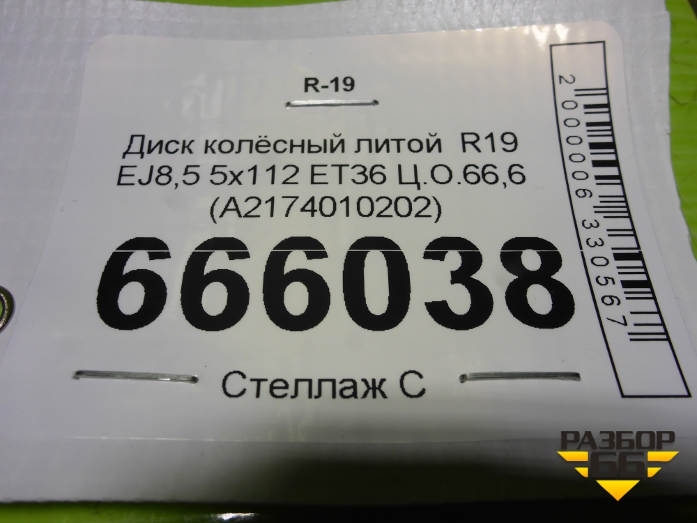 Диск колёсный литой R19 EJ8,5 5x112 ET36 Ц.О.66,6 (A2174010202) в Краснодаре
