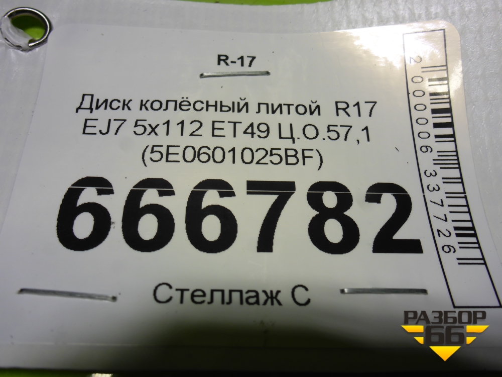 Диск колёсный литой R17 EJ7 5x112 ET49 Ц.О.57,1 (5E0601025BF) в Краснодаре